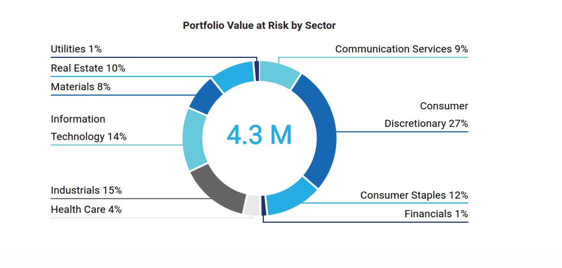 The analysis is based on the most relevant scenarios used as part of the IPCC 5th Assessment Report (AR5). The baseline scenario is built around Representative Concentration Pathway (RCP) 4.5 (1.7-3.2 ℃ temperature rise by 2100). In this scenario, the portfolio value at risk by 2050 is estimated to be 20 EUR million, with the Information technology and Consumer Discretionary being the most exposed ones. This represents a 0,8% loss in the overall portfolio value. The value at risk rises to over 32 EUR million if a worst-case scenario is employed, assuming a temperature increase over 3.2°C.
