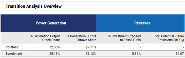 The transitional climate risks analysis dives into the power generation mix of the portfolio.