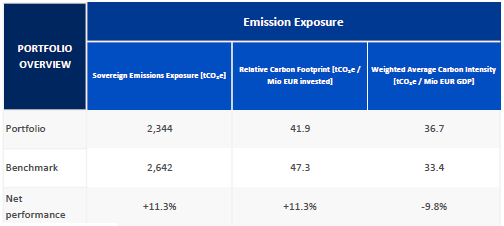 Figura 7: Cartera de deuda soberana del fondo Etica Impatto Clima – Resumen de la huella de carbono