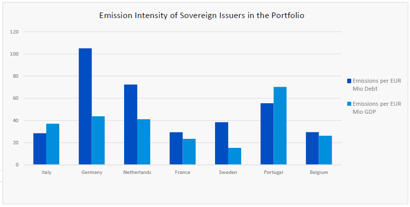 Figura 9: Intensidad de emisiones de los principales componentes de la cartera de deuda soberana del fondo Etica Impatto Clima