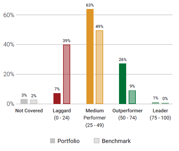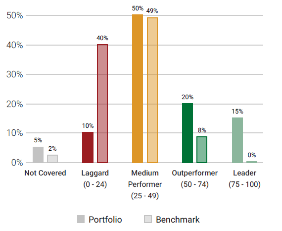 [9] CRR is based on a scale of 0 (very poor performance) to 100 (excellent performance) and allows to categorise companies according to their carbon-related performance into four groups: Climate Laggards, Climate Underperformers, Climate Performers, and Climate Leaders. For more details, please refer to Appendix.