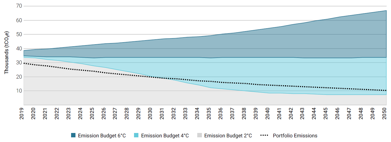 [5] The GHG emission pathway and carbon budget of the Portfolio are the result of the aggregation of company-level data. The GHG emission trajectories at the company-level include both historical (i) and forward-looking indicators (ii) to project the emission intensity profile of a company from now until year 2050:
