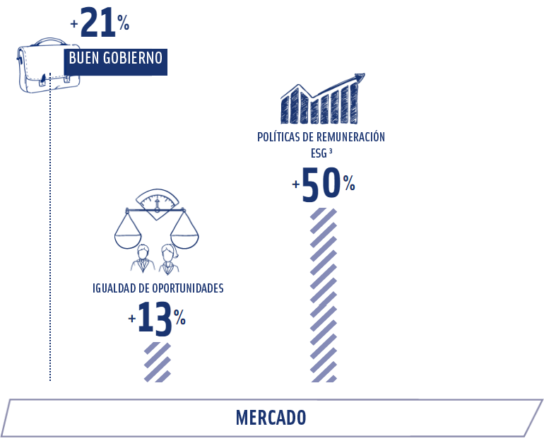 3Tomamos como referencia los objetivos ESG, vinculados a la parte variable de la remuneración. Es decir, la parte de la remuneración vinculada a los resultados conseguidos y a los objetivos empresariales que logran concretar los administradores y la dirección.