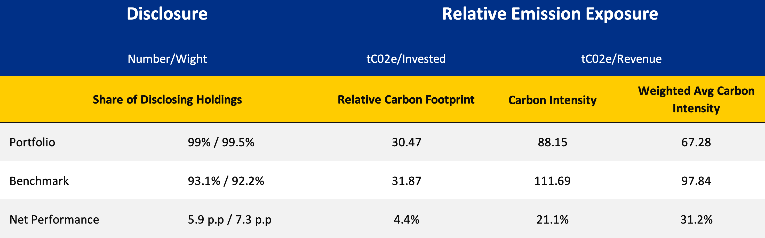 Il portafoglio supera il benchmark su tutte e tre le metriche di carbonio.