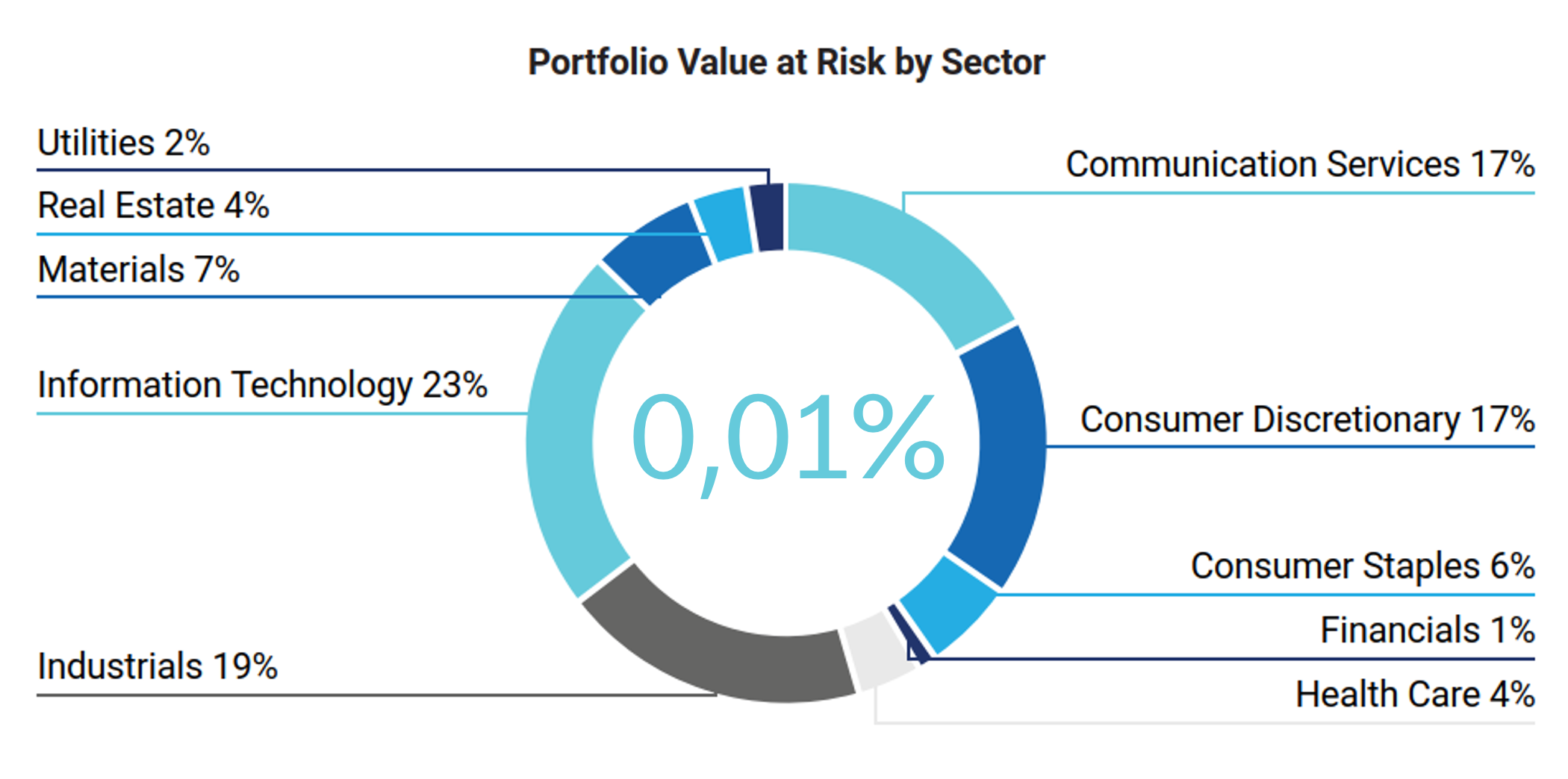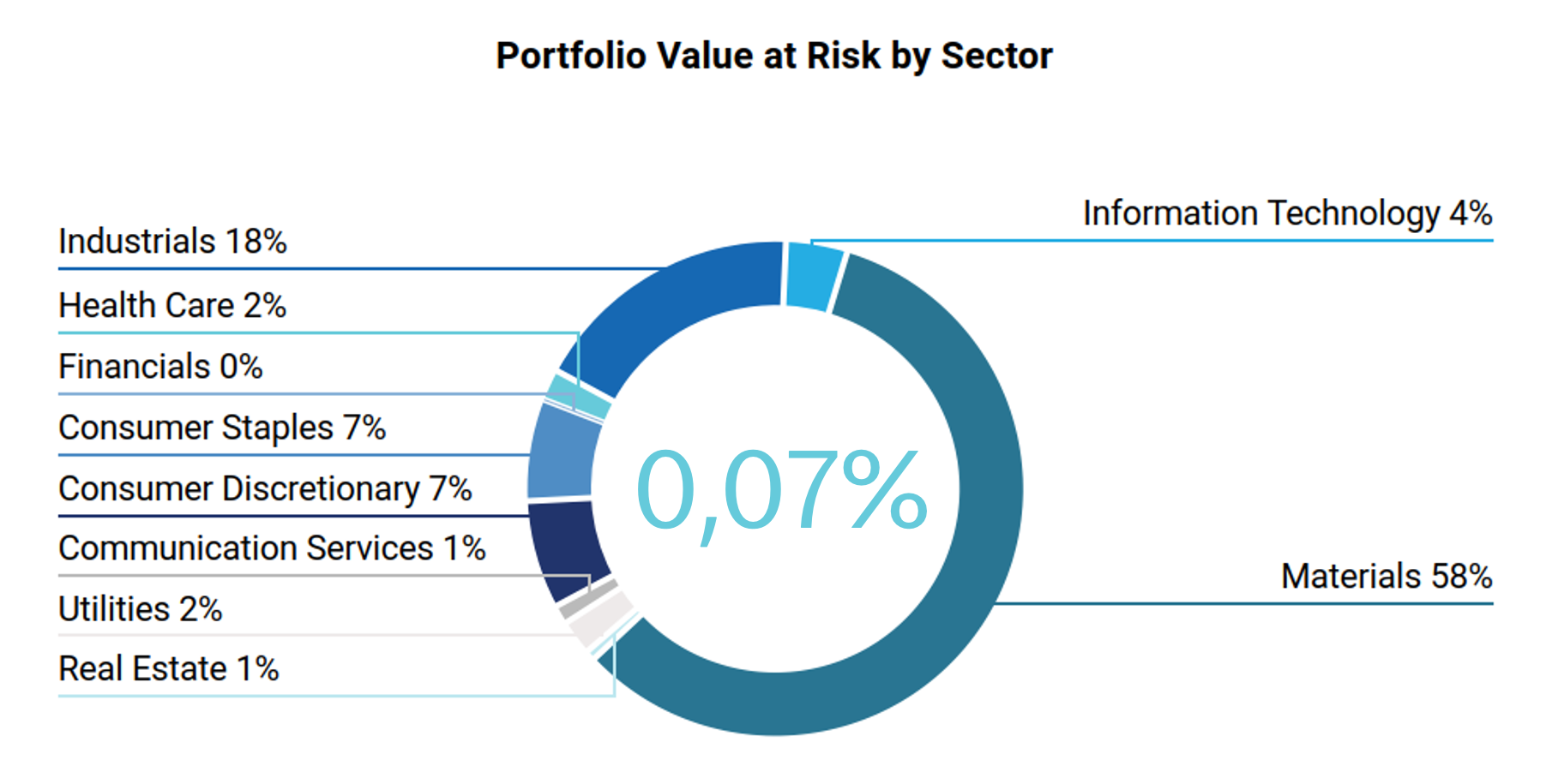 In questo scenario, il valore del portafoglio a rischio entro il 2050 è stimato in 5,9 milioni di euro, con i settori Consumer Discretionary, Consumer Staples e Information technology più esposti. Ciò rappresenta una perdita dello 0,56% del valore complessivo del portafoglio analizzato. Il valore a rischio sale a 431.219 di euro se si adotta lo scenario peggiore, ipotizzando un aumento della temperatura di oltre 3,2°C.