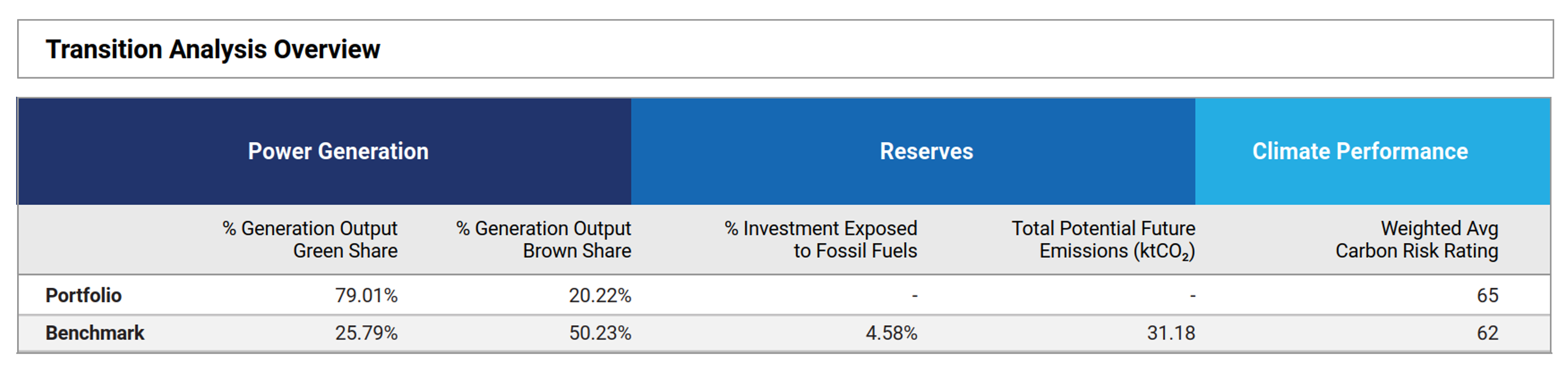 L’analisi dei rischi climatici di transizione analizza anche il mix di produzione di energia elettrica del portafoglio.