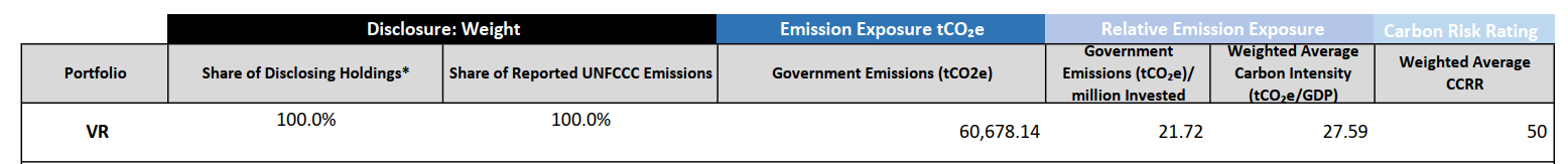Questa sezione confronta le emissioni di gas serra e altre metriche relative al carbonio per il portafoglio di obbligazioni sovrane di Valori Responsabili, compresi i valori assoluti e relativi delle emissioni di carbonio del portafoglio. Le emissioni sono calcolate in base ai principi proposti da Platform Carbon Accounting Financials (PCAF)[5], assegnando le emissioni a un’obbligazione sovrana attraverso attività dirette di un governo e finanziamenti pubblici in altri settori della società.
