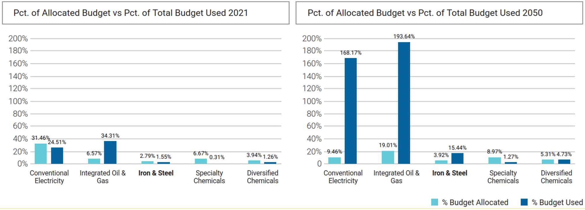 Per il benchmark, il superamento del budget è dovuto principalmente ai sottosettori dell’elettricità convenzionale, del petrolio e del gas integrati nonché del ferro e dell’acciaio.