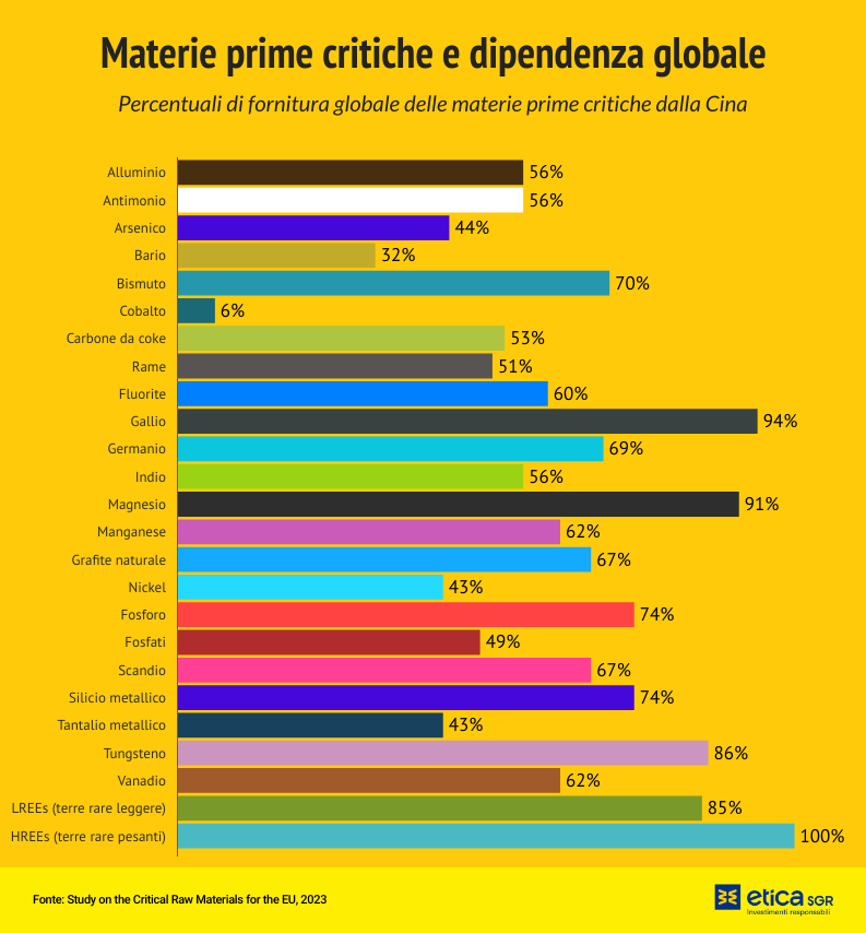 La crescente dipendenza dalle materie prime critiche è una sfida geopolitica ed economica cruciale, ancor più visto che la loro immissione nel mercato è controllata da un numero ristretto di Paesi. Elementi come litio, cobalto e minerali poco conosciuti, come il cesio e il samario, essenziali per batterie, microchip e turbine eoliche, sono prevalentemente controllati dalla Cina, che domina gran parte della produzione e della raffinazione. Questo squilibrio di mercato sta alimentando tensioni internazionali, sfociando in dazi, restrizioni all’export e guerre commerciali.