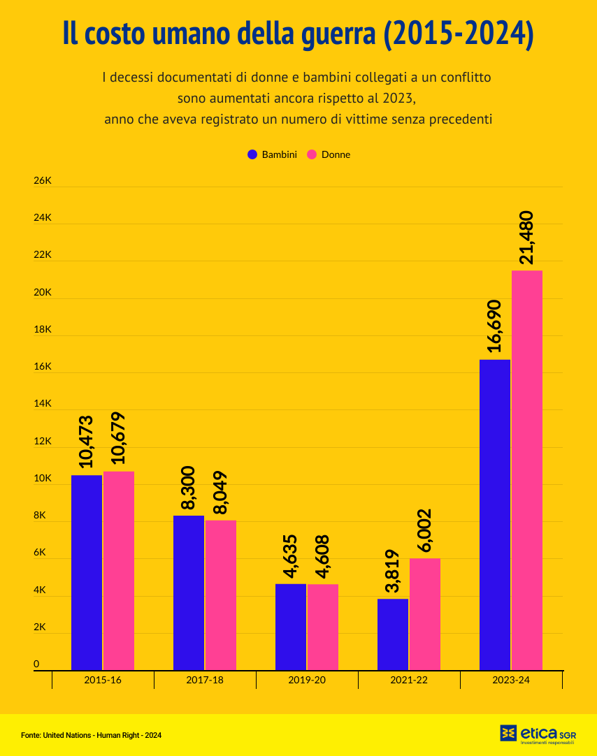 Un aumento del 70% delle vittime civili in un solo anno, il 2023, mostra con chiarezza che nei conflitti le persone comuni sono sempre più un bersaglio.